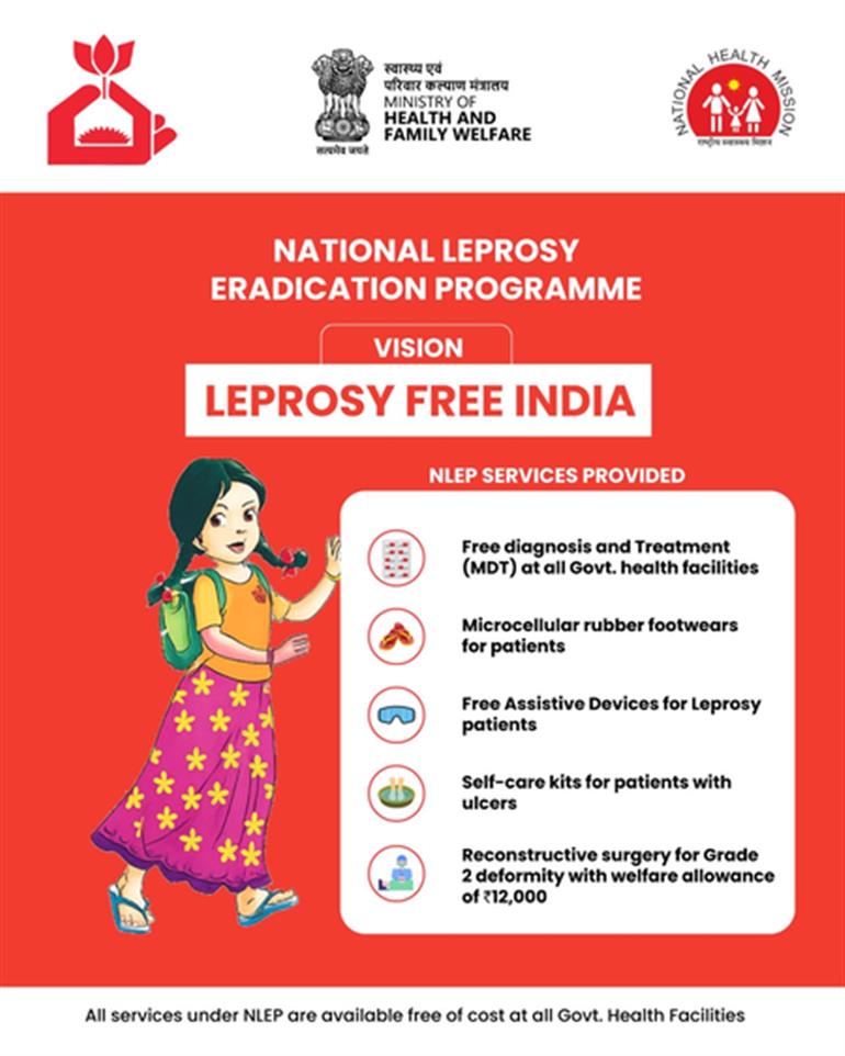 स्वास्थ्य मंत्रालय ने सोशल मीडिया प्लेटफॉर्म X पर पोस्ट किया, “राष्ट्रीय कुष्ठ रोग उन्मूलन कार्यक्रम (एनएलईपी) के तहत, भारत कुष्ठ रोग मुक्त भारत की दिशा में अपने प्रयास जारी रखे हुए है, जिसके तहत देशभर में सरकारी स्वास्थ्य केंद्रों पर निःशुल्क निदान, उपचार और देखभाल सेवाएं सुनिश्चित की जा रही हैं।”