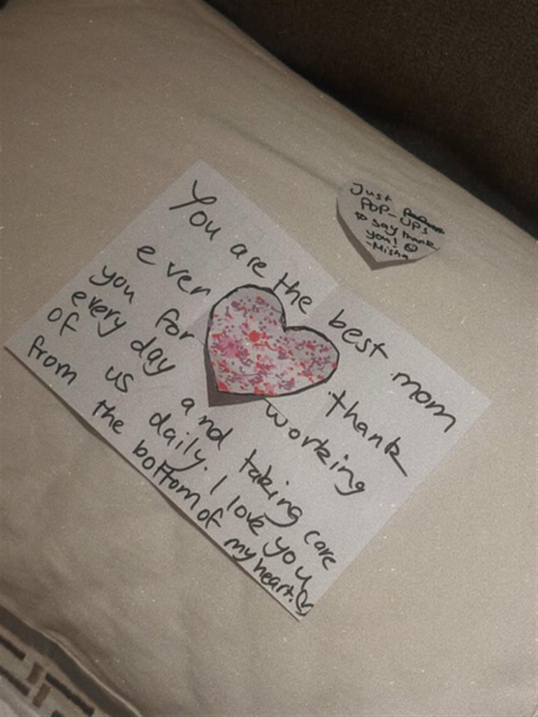 मीरा ने इंस्टाग्राम पर मिशा द्वारा लिखे गए हस्तलिखित पत्र की तस्वीर साझा की, जिसमें लिखा था, "आप सबसे अच्छी मां हैं। हर दिन काम करने और हमारा ख्याल रखने के लिए धन्यवाद। मैं आपको दिल से प्यार करती हूं।"