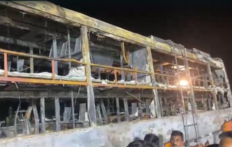 The fire broke out around 3.30 p.m. on Tuesday in a moving AC sleeper bus carrying 57 passengers.