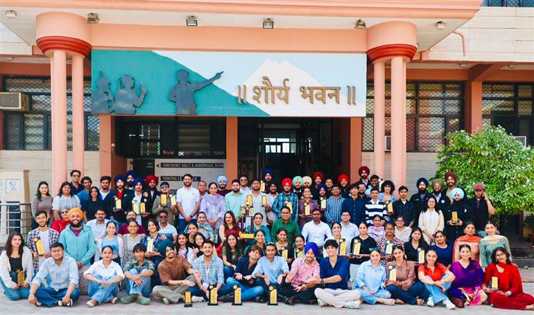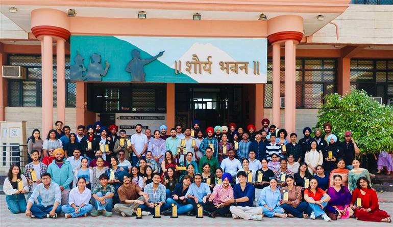 The Music Department of DAV College, Chandigarh once again upheld its melodic legacy, sweeping top positions with captivating performances — securing First in Percussion, Group Bhajan (Team & Individual), and Group Song (Team), along with Second in Group Song (Individual), and Third in Indian Orchestra and Ghazal. In the Heritage Crafts & Traditions category, the college celebrated Punjab’s cultural richness with First prizes in Guddiya Patole, Peerhi Making, and Rassa Vattna, Second in Khiddo and Dasuti, and Third in Naala Making. The Fine Arts events radiated creativity, earning First in Collage Making, Second in Rangoli, and Third in On-the-Spot Painting, Installation, Cartooning, and Mehndi. Excellence in the Literary domain was marked by Second positions in Hindi and Punjabi Handwriting, and Third in Quiz. In Theatre and Performance Arts, DAVians enthralled audiences with First in Skit (Team) and Mimicry, Second in One Act Play, and Third in Mime and Skit (Individual).
