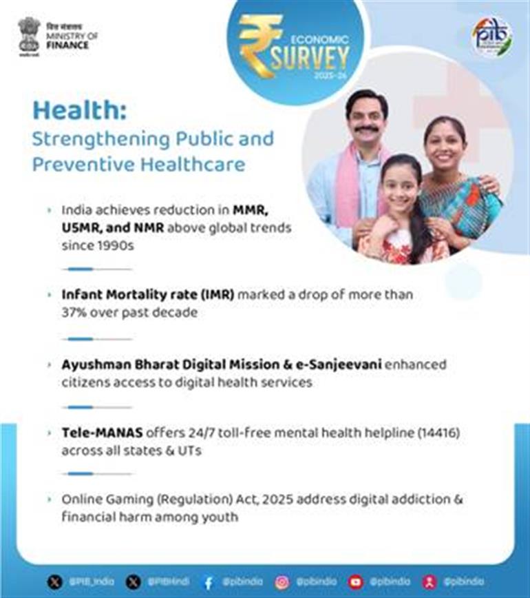 New Delhi, Jan 29 || Increasing public health spending has improved access and affordability of preventive and curative care in the country, according to the Economic Survey 2025-26 on Thursday.