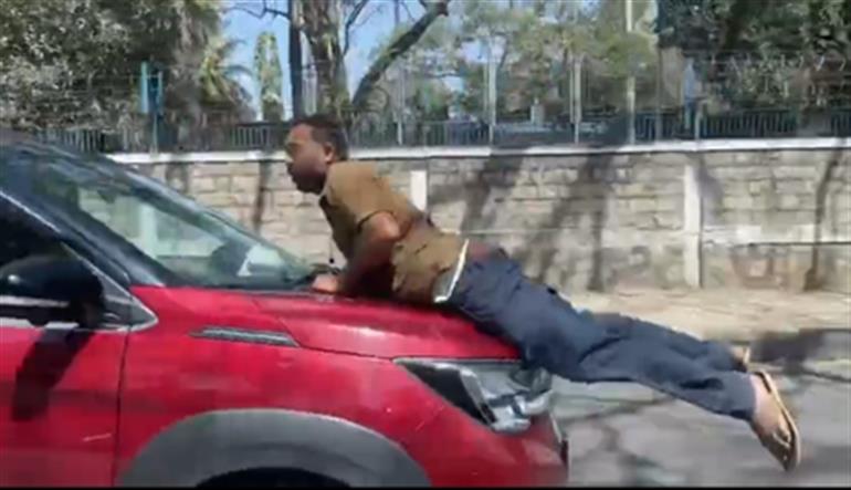 Bengaluru, Feb 12 || In a shocking incident in which driver of a Sports Utility Vehicle (SUV) drove a man clinging to bonnet of his vehicle after road rage in Bengaluru , the police have registered an attempt to murder case against the accused.