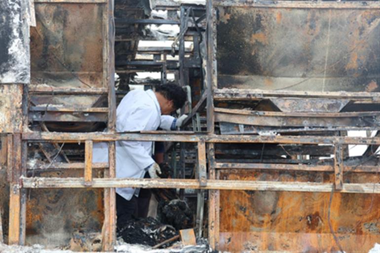 ਬਚੇ ਲੋਕਾਂ ਨੇ ਪੁਲਿਸ ਨੂੰ ਦੱਸਿਆ ਕਿ ਜਦੋਂ ਬੱਸ ਵਿੱਚ ਅੱਗ ਲੱਗੀ, ਤਾਂ ਉਨ੍ਹਾਂ ਨੇ ਲੜੀਵਾਰ ਧਮਾਕੇ ਸੁਣੇ।