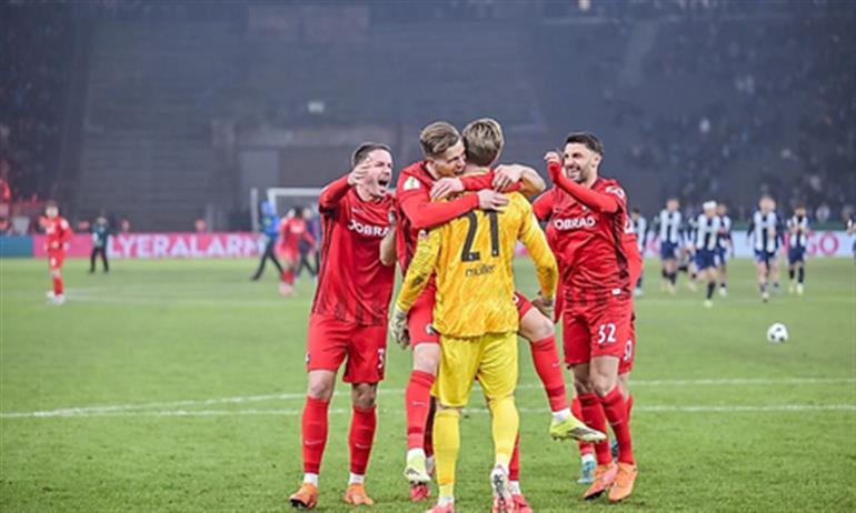 ਬਰਲਿਨ, 11 ਫਰਵਰੀ || ਮੰਗਲਵਾਰ ਨੂੰ ਵਾਧੂ ਸਮੇਂ ਤੋਂ ਬਾਅਦ 1-1 ਦੇ ਡਰਾਅ ਤੋਂ ਬਾਅਦ ਪੈਨਲਟੀ 'ਤੇ ਹਰਥਾ ਬੀਐਸਸੀ ਨੂੰ 6-5 ਨਾਲ ਹਰਾ ਕੇ ਐਸਸੀ ਫ੍ਰੀਬਰਗ ਨੇ ਜਰਮਨ ਕੱਪ ਸੈਮੀਫਾਈਨਲ ਵਿੱਚ ਆਪਣੀ ਜਗ੍ਹਾ ਪੱਕੀ ਕਰ ਲਈ।